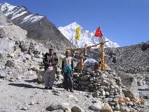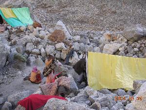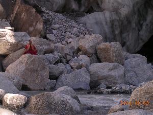 ガンガーの流れの音、時折聞こえる氷河が崩壊する音、風もなく、空はコバルトブルー、氷河の薄く輝くブルー、この世界には私たちとガイド、サドーしか今はもういない。