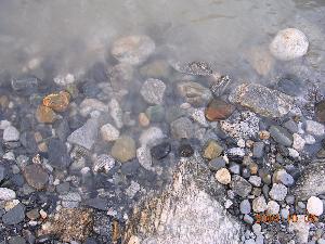 小さな透き通る氷の破片が水晶のそばを流れていく手に取ると太陽の光にダイヤモンドのように輝いている。