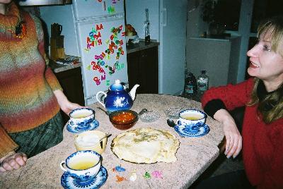夜11時頃再び出かける。近くに住むドゥルージアで、会社の同僚らしい。どうやらここで年越しらしい。この家に住むルーバ、ミーチャ(息子・大学生)、ラリサとルーバの友達ターニャがいた。 続く。