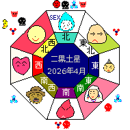 二黒土星は坎宮(かん) 陰で五行は水、時は冬至で方位は北です。 健康・子供運⑥運気最低(凶)SEX・秘密・苦悩・睡眠・研究。何事もうまく行かない。焦ってはいけない日。 |