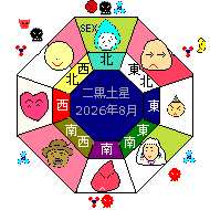 二黒土星は中央 五行は土、時はあいまい、方位は中央の宮に入ります。 健康・子供運⑥運気最低(凶)SEX・秘密・苦悩・睡眠・研究。何事もうまく行かない。焦ってはいけない日。 |