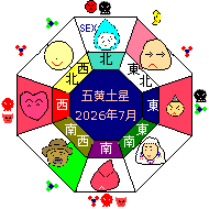 五黄土星は兌宮(だ) 五行は金、時は秋分ころ、方位は西の宮です。 健康・子供運⑨運気最低(凶)SEX・秘密・苦悩・睡眠・研究。何事もうまく行かない。焦ってはいけない日。 |