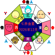 七赤金星は中央(八方位の真ん中) 五行は土、時はあいまい、中央の宮に入ります。 健康・子供運②運気最低(凶)SEX・秘密・苦悩・睡眠・研究。何事もうまく行かない。焦ってはいけない日。 |