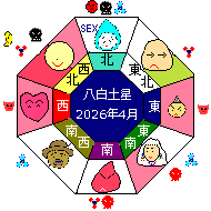 八白土星は兌宮(だ) 五行は金、時は秋分ころ、方位は西です。 健康・子供運③運気最低(凶)SEX・秘密・苦悩・睡眠・研究。何事もうまく行かない。焦ってはいけない日。 |