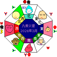 九紫火星は兌宮(だ) 五行は金、時は秋分、方位は西です。 健康・子供運④運気最低(凶)SEX・秘密・苦悩・睡眠・研究。何事もうまく行かない。焦ってはいけない日。 |