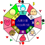 九紫火星は坤宮(こん) 五行は火、時は立秋(7月~8月)ころ、方位は南西の宮です。 健康・子供運④運気最低(凶)SEX・秘密・苦悩・睡眠・研究。何事もうまく行かない。焦ってはいけない日。 |