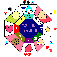 九紫火星は震宮(しん) 五行は木、時は立夏(4月~5月)ころ、方位は南東の宮に入ります。 健康・子供運④運気最低(凶)SEX・秘密・苦悩・睡眠・研究。何事もうまく行かない。焦ってはいけない日。 |