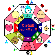 年方位盤 2027年2月4日より2028年2月3日まで丁未九紫年