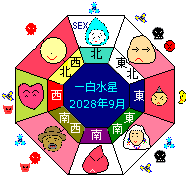 年方位盤 2028年2月4日より2029年3月2日まで 戊申八白年