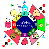 年方位盤 2028年2月4日より2029年2月2日まで戊申八白年