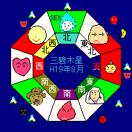 | 8月運勢盤 | 上年運下月運 | 注意して下さい | |