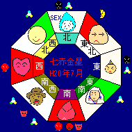 | ←6月に戻る 七赤金星運勢カレンダー平成20年7月7日〜平成20年8月6日まで 8月に進む→ | ||||